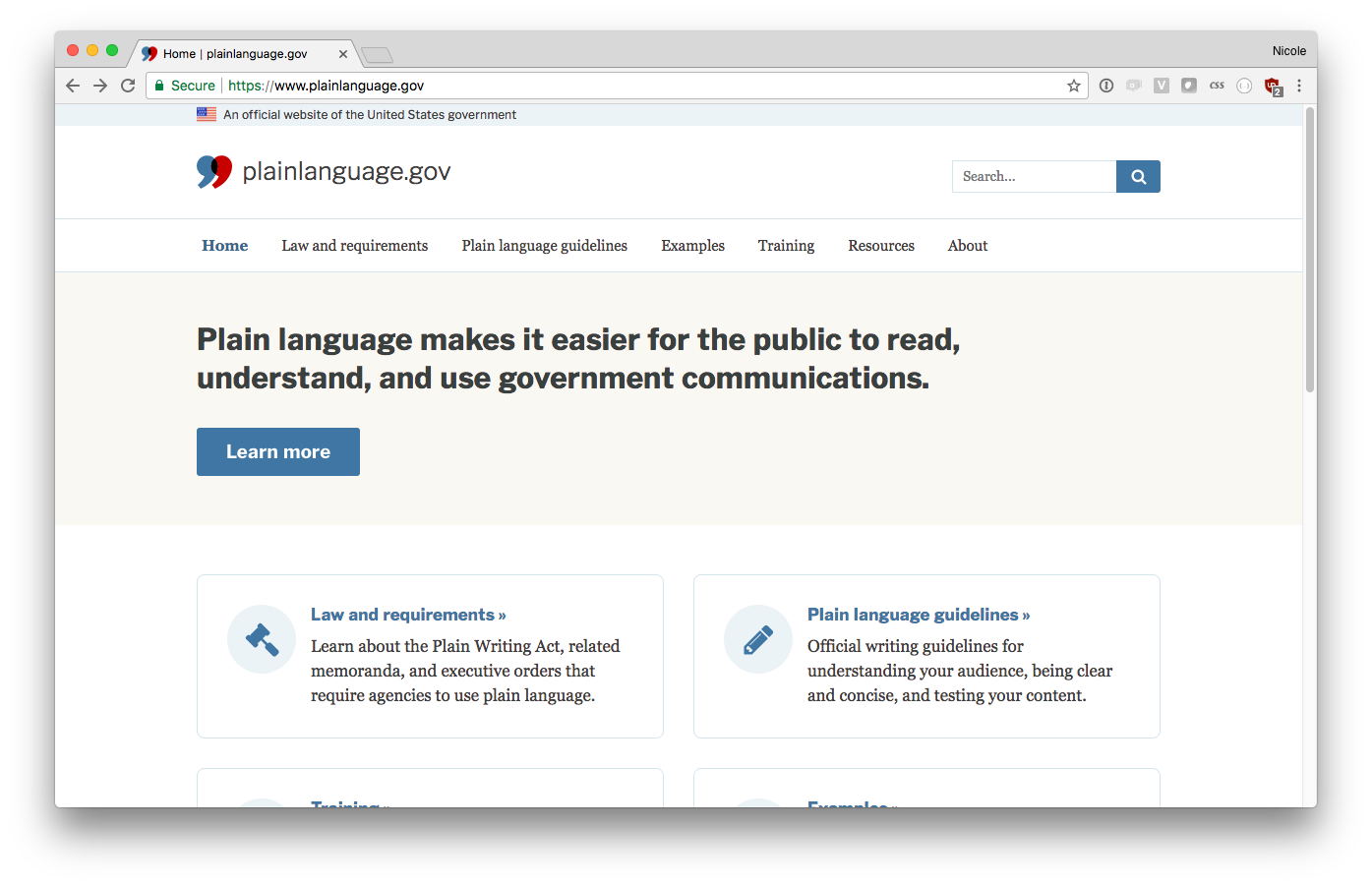 I directed the redesign of plainlanguage.gov, an online resource for civil servants and government agencies.